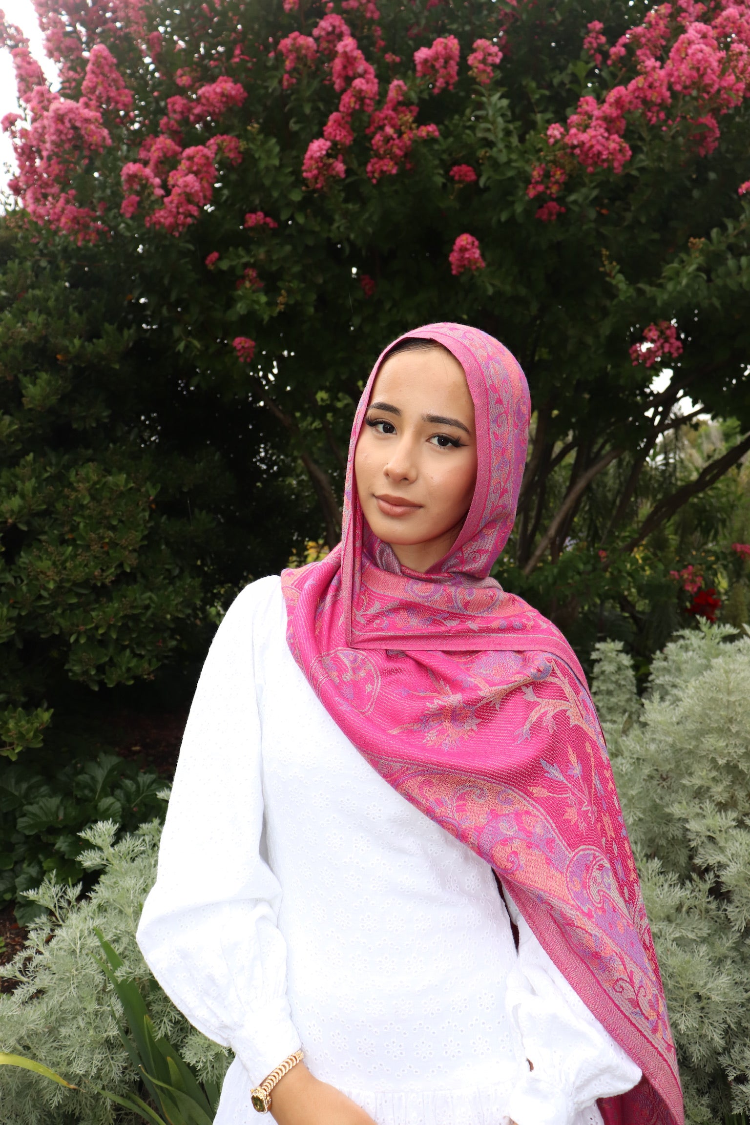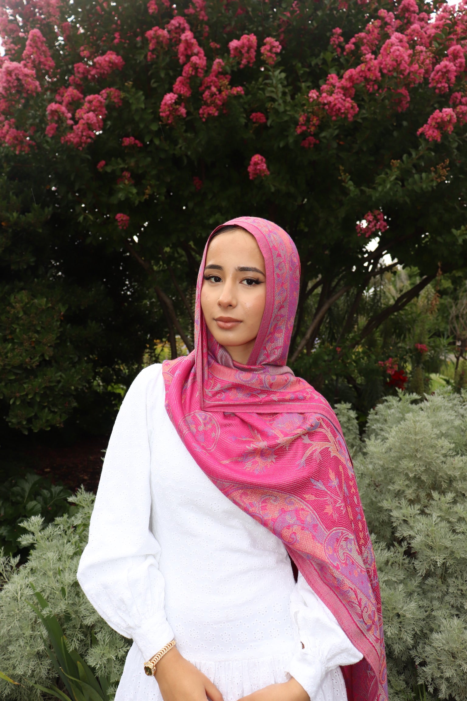 Elevate your wardrobe with this luxurious pink pashmina. Made of 100% pashmina, its soft and elegant texture adds a touch of luxury to any outfit. Perfect for any occasion, this scarf provides both style and warmth. A must-have accessory for any fashion-forward individual.